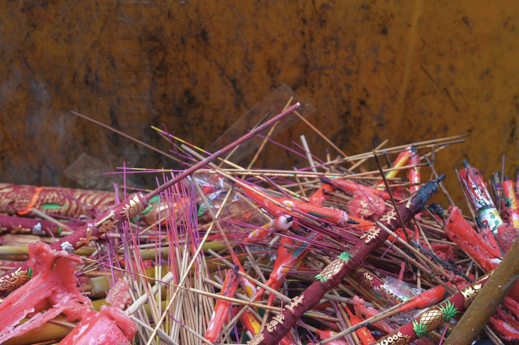 Fishing is one of Hong Kong’s thriving trades, with some traditional festivals rooted in fishing culture. People burn incense to pray for safe voyages, good catches, and peace for lost souls. Nowadays, temples overflow with worshippers during these festivals, and staff must constantly clear incense burners to make room for later arrivals to place their incense. Most incense sticks are extinguished and discarded shortly after being lit.