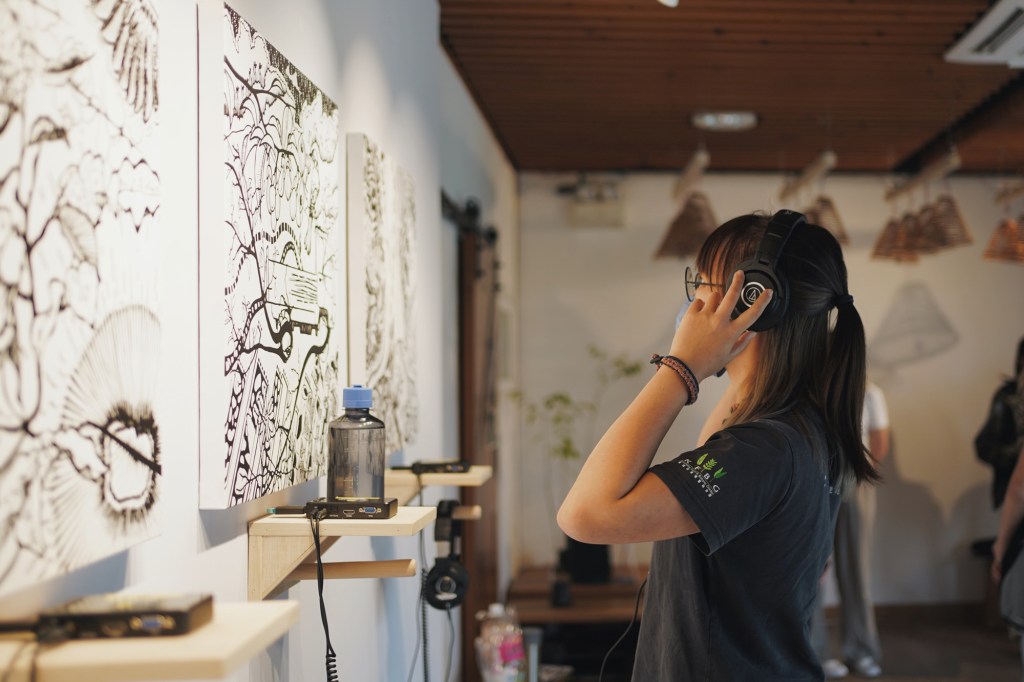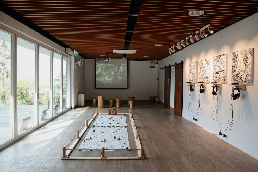 Meanwhile, PhD student Cheng Yang and Prof. Ryo Ikeshiro from the City University of Hong Kong are collaborating with KFBG ecologists Dr. Huarong Zhang and Dr. Stephan Gale to explore the sensory reverberations of Incense Tree life cycles. In different weathers, Cheng is observing and documenting the lives of Incense Trees, capturing the surrounding environment through field recording and video shooting. She is particularly interested in using different media to show where Incense Trees grow and how they perceive their surroundings. The drawings she ultimately presents combine sound and visual elements to vividly depict the interactions between incense trees, other species and humans. In addition, Cheng’s sound installation allows audiences to listen to the genetic diversity of incense trees, offering a scientific perspective to rediscover incense trees.