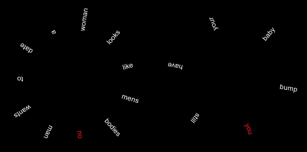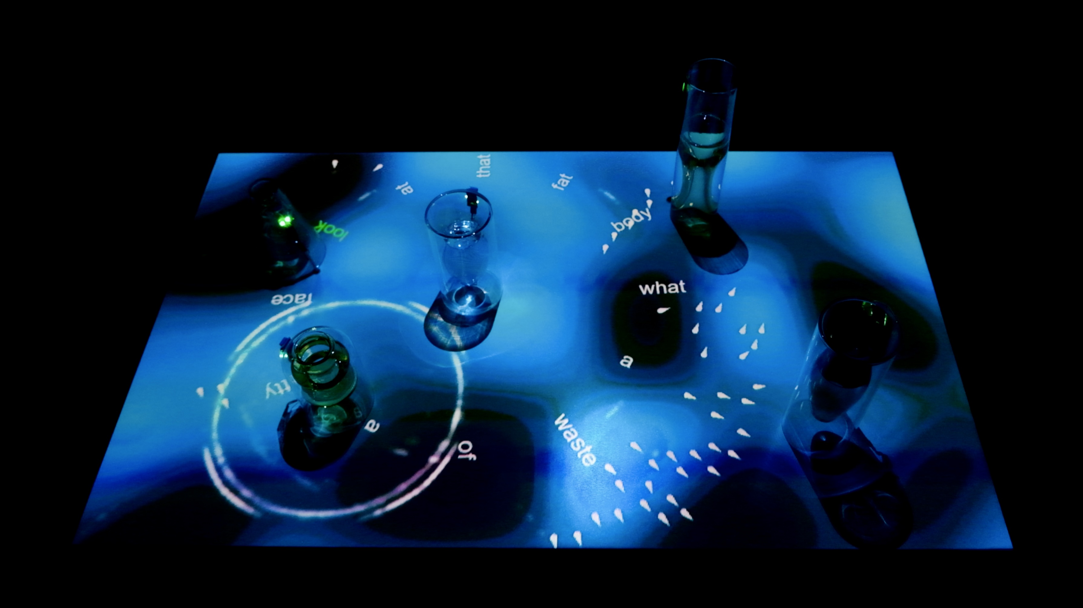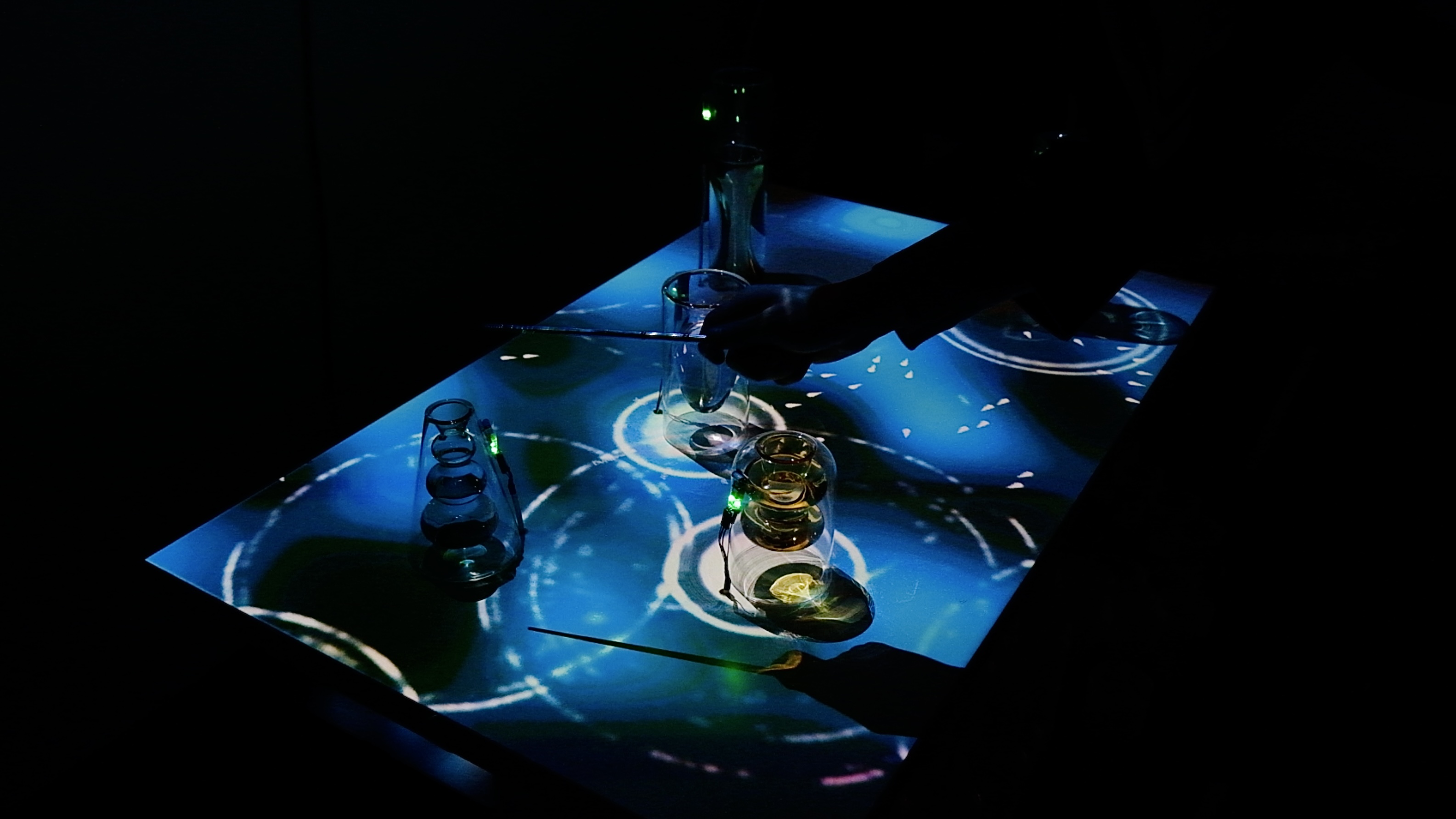 In the context of Chinese traditional culture, water and women are intricately linked, women and water are recognized as the genesis of life. Water serves as a symbolic representation of feminity and women are conceived as being comprised of water. To convey the diversity of women’s body shapes, this interactive installation features five distinct shapes of glass cups containing water, each symbolizing diverse women’s body types. The interactive mode involves enabling the audience to observe dynamic images includes the water ripples and authentic comments from social media by knocking on distinct glass cups. It can enable the audience feel the hurt of these words on women as much as the percussive force. If the audience do not have enough force to knock they may not see the effect. The greater the percussive force, the more glass cups will sense it, which represents the severity of judgement directed at a woman also influences the self-perception of other women.